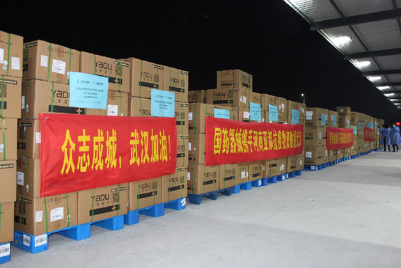 1月25日大年初一凌晨2时,国药器械、河南亚都捐助的共计290余万件疫区急需医用防护类产品,包括医用外科口罩、一次性使用医用口罩、医用帽、医用手套等,从河南长垣送往武汉,并于当日19时左右顺利交付湖北省新型冠状病毒感染的肺炎防控指挥部,将快速供应相关医疗、疾控机构使用。