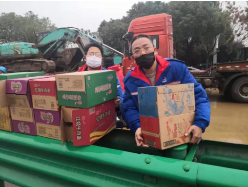 解决了如厕,建筑工人的饮食问题又接踵而至。为了支持火神山医院建设,各加油站纷纷拿出仅剩的库存,一夜之间,59箱泡面、100箱卓玛泉、50件茶饮料、鸥露纸、洗手液等物资全部备齐。加油站的兄弟们,一点点的将保供物资送进了施工地点。