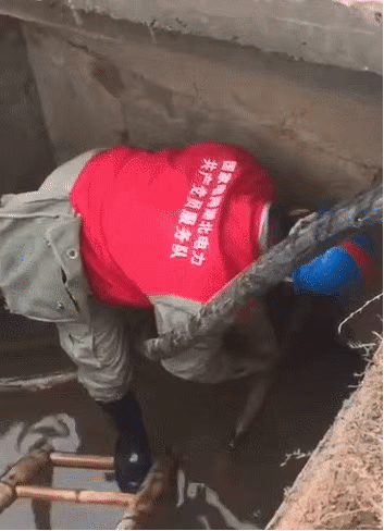 在雷神山医院电缆敷设现场,供电员工冒着严寒钻进满是积水的电缆沟;
