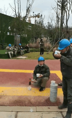 河南驻马店的刘海龙师傅,今年没有回家,自愿到工地来支援。他说自己虽是白班,但工地上没有具体上班和下班的时间,有事情就要去做。“我今天的任务是看护这个修路用的定位旗,不能让人碰倒。我在这里没有认识的人,我是自愿过来的。”