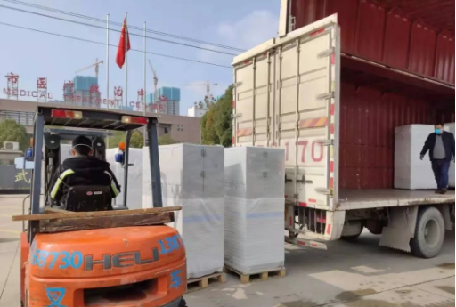 抵达金银潭医院的设备和药品