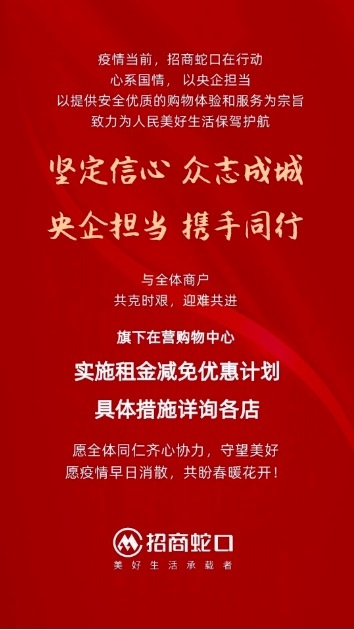 为帮助商户走出困境,招商蛇口采取先发策略,提出减免措施。针对产业园区办公类客户,公司拟免除2020年1月31日至2月9日期间(10天)50%的租金。针对深圳区域商业项目,拟给予商户2020年1月25日至2月9日(年初一至年十六)租金减半的优惠措施。