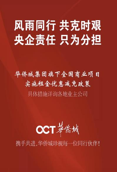 1月31日,华侨城集团决定对旗下全国各地的商业项目实施租金优惠减免政策,与合作伙伴共渡难关。