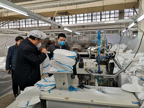在生产设备保障方面,积极协调、调拨防护服关键生产设备压条机。协调天津市有关部门开通绿色通道,确保生产设备用最短时间投入上产,并在一天内为企业提供了详细的装备清单、供货商、联系方式等信息,为企业顺利上产提供了坚实保障。