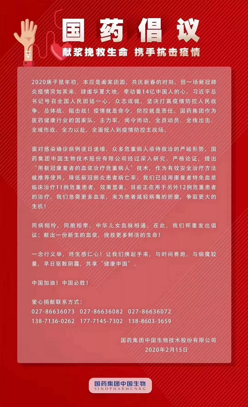 同病相怜,同胞相牵,为了挽救更多鲜活生命,亚洲午夜成人满18免费网站中国生物向广大新冠肺炎康复者郑重发出倡议:
