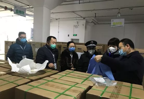 2020年2月15日,北京市药监局相关领导第一时间到现场查看物资筹备情况,并完成首批应急防控物资调出,国药器械北京公司经营班子及相关部门负责人参与物资交付。
