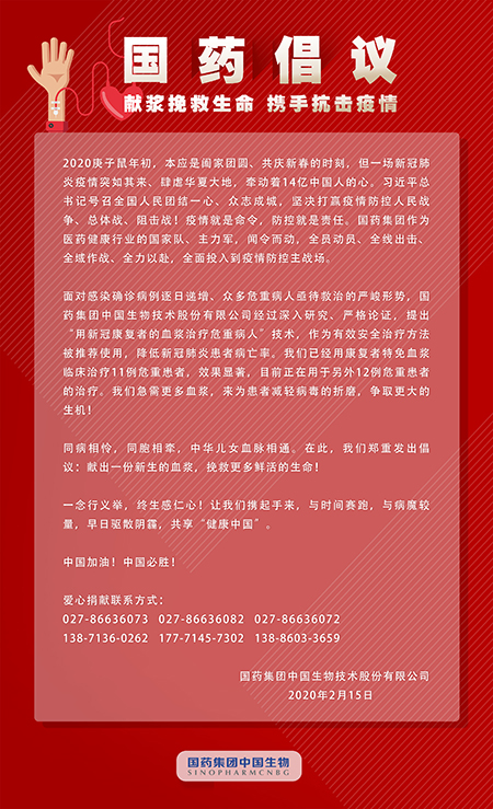 为了挽救更多鲜活生命,为患者争取更大的生机,亚洲午夜成人满18免费网站中国生物向新冠肺炎康复者郑重发出倡议: