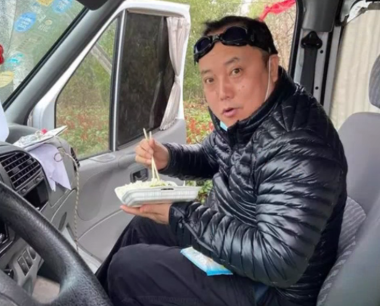 昔日吃贯了的一天三餐,现在变成了一天一餐,为了不影响防疫,他们唯一的一餐盒饭,都是拿到远离居民区的公路边吃。平时,则用车上备的零食充饥。