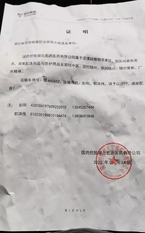 抗疫医药,源源地送出,当他看见国药车将物资送往武汉市协和医院、武汉市六医院、武汉市儿童医院、武汉市红十字医院时,郭洪伟知道:这里的医护人员,正在超负荷的工作;来自外地驰援人员,正与武汉医护人员一道在辛勤付出。疫情再可怕,我们也要迎难而上,履职尽责!