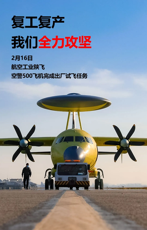 2月16日,航空工业陕飞完成对空警500飞机首飞任务。