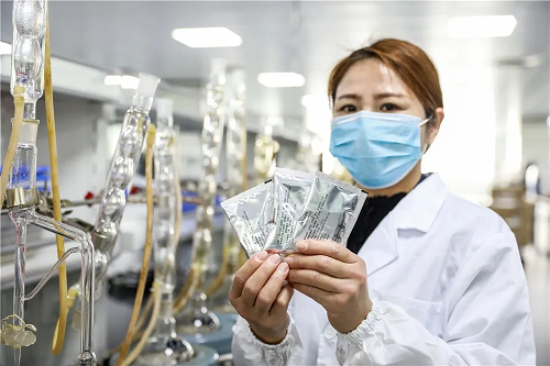 记者在一方制药成品库里,看到了“肺炎1号方”成品,拆开外包装盒,从里面拿出一包,装有三剂量的中药配方颗粒,病患可服用三天。“一天一剂,服用非常方便。”魏梅介绍,“肺炎一号方”由用金银花、连翘等16味中药组成,患者拿到手时只是一小袋颗粒,直接冲服即可。