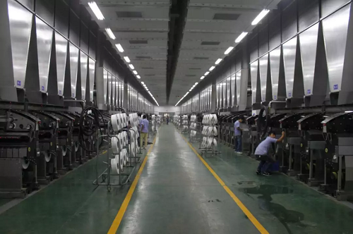 通过国网电商公司金融科技平台融资成功的福建景丰科技开足马力提升产能,工作人员正取下锦纶丝成品,准备送检。