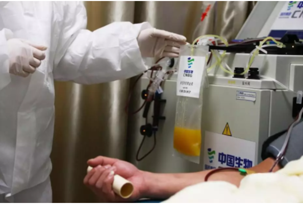 A CNBG medical worker collects plasma from a person recovered from the COVID-19 epidemic. [Photo/sasac.gov.cn]