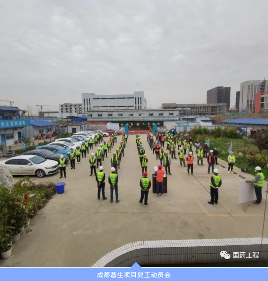 国药工程多个项目先后召开复工会,项目管理人员和各岗位人员积极努力,克服困难,陆续返岗奋战。截止到目前,成都蓉生项目、扬州威克项目、云南血制项目于2月下旬先后复工,上生所流感项目、威奇达项目、江苏物流项目、南阳物流项目也在科学有序推进复产复工。