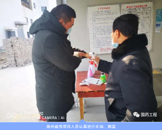 扬州威克项目人员认真进行手消、测温