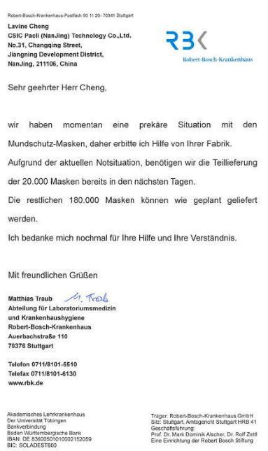 德国罗伯特博什公立医院援售函