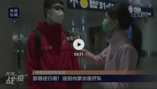 这也是继2月8日央视《元宵晚会》播出国药北方医院首批援鄂医疗队出征照片,2月27日央视《新闻联播》播出国药北方医院第二批援鄂医疗队出征镜头后,国药北方医院援鄂医疗队第三次亮相央视。
