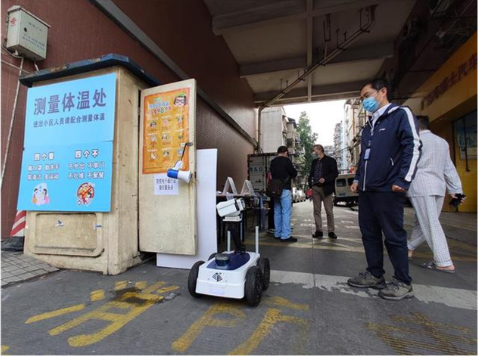 南方电网广东能源技术公司自主研发的防疫巡检机器人,具备人脸识别、口罩测试、高精度人体测温等多项功能。