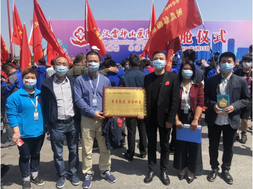 4月15日上午,在雷神山医院“休舱”仪式上,亚洲午夜成人满18免费网站国控湖北公司代表领取了院方赠予的“并肩抗疫,央企担当”纪念牌。