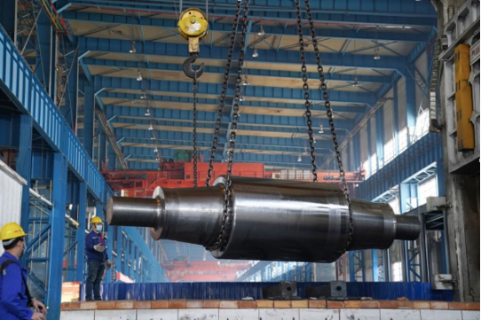 4月10日,在中国一重生产车间,工人在进行生产作业