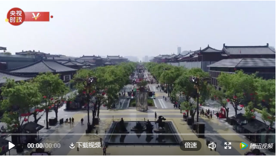 习近平在西安考察的第三站,是大唐不夜城步行街。这是一条具有唐风唐韵的雕塑景观街区。2019年,它和北京王府井步行街、上海南京路步行街一道入选国家首批高品位步行街试点。