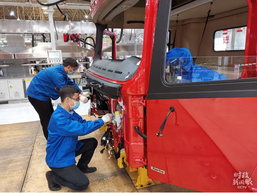 △在常态化疫情防控的前提下,陕汽于2月14日复工,目前复工率已达100%,产能全面恢复。(总台央视记者杨立峰、杨松涛拍摄)