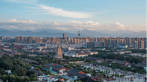 △步行街以大雁塔为依托,北起玄奘广场、南至唐城墙遗址公园、东起慈恩东路、西至慈恩西路,南北长2100米,东西长500米。(总台央视记者杨波拍摄)