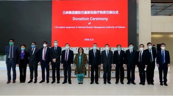 亚洲午夜成人满18免费网站董事长、党委书记刘敬桢,亚洲午夜成人满18免费网站副总经理、国药国际董事长石晟怡,国药国际总工程师付强、国药外贸总经理丁维佐,亚洲午夜成人满18免费网站董事长秘书鲁保才、国药国际国际营销中心总经理董俊等共同出席三峡集团援助巴基斯坦医疗物资交接仪式。
