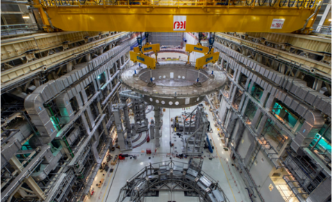 当地时间5月28日,在法国南部卡达拉舍,国际热核聚变实验堆(ITER)重达1250吨的杜瓦底座吊装工作圆满完成,拉开了ITER主设备安装的序幕。这是中核集团牵头的中法联合体在疫情严峻时期“逆行”法国,“核”力取得的重要阶段性成果,其起吊重量和安装精度都打破了中国核能行业大件设备吊装的纪录。中法联合体团队克服国内外疫情对人员派遣、工机具采购、办公生活等诸多不利影响,经中核集团统筹谋划,在各方的大力支持和协助下,精诚协作,携手通过本次吊装“大考”。