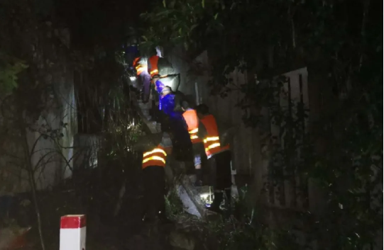 雨夜中,袁家山灯火通明 ,紧张的搜救工作还在继续。