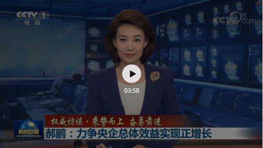 ▲8月10日CCTV《新闻联播》“权威访谈 · 乘势而上 奋勇前进”——国资委党委书记、主任郝鹏接受央视总台记者专访