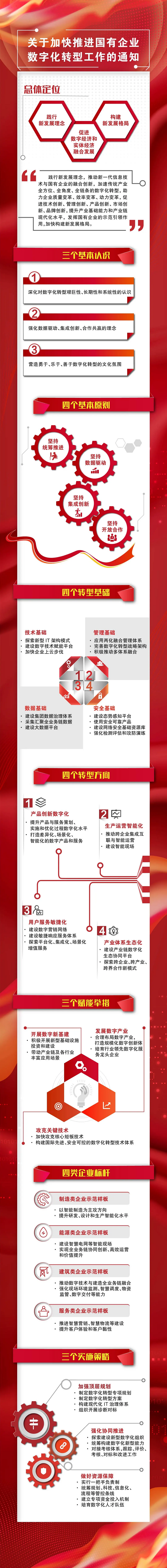 近日,国务院国资委正式印发《关于加快推进国有企业数字化转型工作的通知》,系统明确国有企业数字化转型的基础、方向、重点和举措,开启了国有企业数字化转型的新篇章,积极引导国有企业在数字经济时代准确识变、科学应变、主动求变,加快改造提升传统动能、培育发展新动能。以下为通知图解: