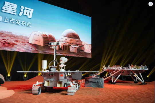 ▲“天问一号”1:1着陆平台和火星车(点击图片了解详情)