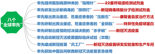 ——体现了国药速度,48小时完成火神山医院药房、库室从筹建到投入运营;一周之内完成ECMO设备从提出需求、签订合同到航空接力、清关运抵的国际采购奇迹;60天建成新冠疫苗生产车间;98天研发出新冠灭活疫苗。