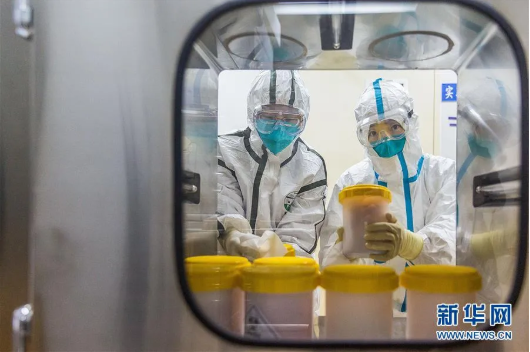 ▲ 2月25日,工作人员在中国疾病预防控制中心传染病预防控制所P3实验室传递窗口接收刚刚从浙江省疾控中心运抵的疫苗生产用新型冠状病毒毒株。(来源:新华社)