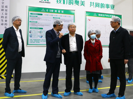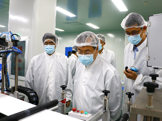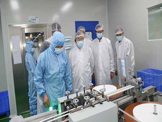 刘敬桢一行随后对合作股东奥美医疗用品股份有限公司(以下简称“奥美医疗”)疾控防护用品生产基地项目、EO灭菌中心、产品展示中心进行参观并现场指导。