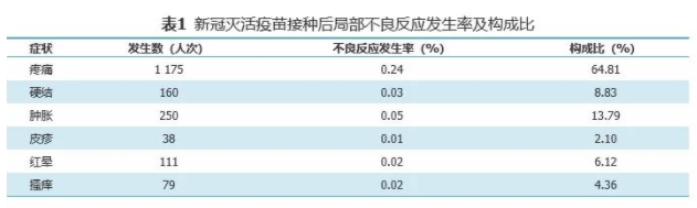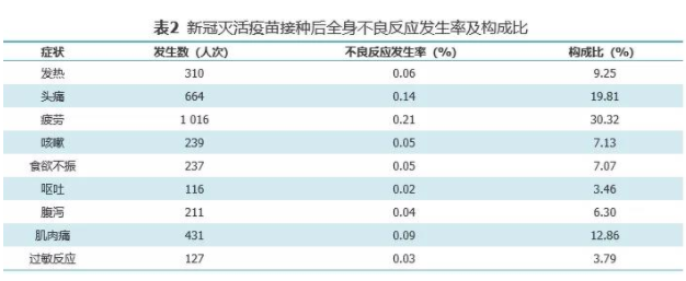 在这519543人次接种信息中,共监测不良反应信息5164条,北京制品研究所、武汉生物制品研究所生产的新冠灭活疫苗总不良反应发生率为1.06%,局部不良反应发生率为0.37%,全身不良反应发生率为0.69%。