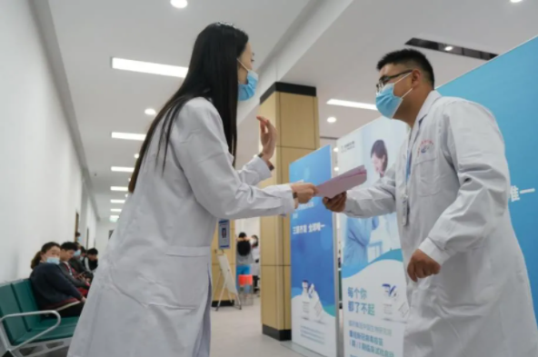 ▲中国生物临床医学中心副主任杨云凯与现场工作人员就临床试验有关细节流程与要求进行沟通