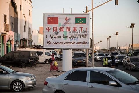 “中国疫苗来了”的标语牌出现在毛里塔尼亚街头