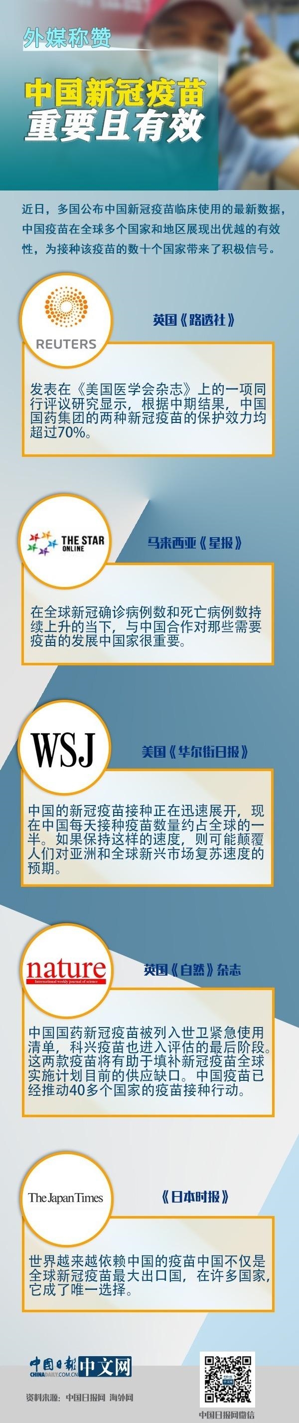 【中国日报网】图解:外媒称赞中国新冠疫苗重要且有效