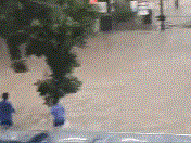 ▲7月20日17时许,中国铁建十四局集团郑州市政节点项目部门口有3人被困路中间,洪水齐腰,行人随时有可能被水流冲走。正在该项目出差的全国优秀党务工作者李传营见状,从项目部叫了两位强壮同事,拴上绳索淌水到路中,奋力将行人救下。