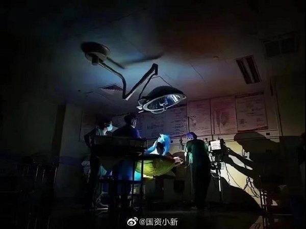 ▲“你出生的第一天,就要面对这世界的洪水猛兽。即使只剩下一束光,我们也用尽全力为你点亮,为你保驾护航。” 7月21日凌晨,在郑州大学第三附属医院河南省妇幼保健院产科手术室,因暴雨停电,国家电网发电车及时前来,为备用灯供电,在黑暗中照亮了新生命的世界。