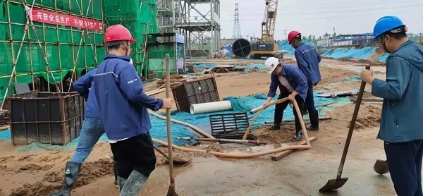 ▲受强降雨影响,中国能建西北电建郑州航空港项目施工现场多处积水,项目部启动应急预案,开启排水泵24小时不间断排水,通过堵截围挡对水流方向进行疏导。项目部积极备战,目前防汛物资充足,全体人员齐心协力奋战一线,全面排查暴雨对项目安全方面造成的影响,逐一消除隐患,确保安全度汛。