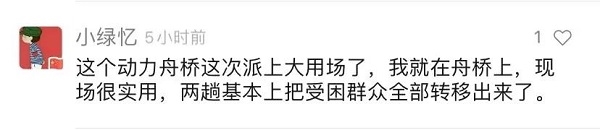 据悉,参与此次救援的两台动力舟桥,由中国船舶所属中船应急建造,在接到中国安能调用需求后,中国船舶紧急交付,并派出救援装备及救援技术人员,和中国安能一起参与到村民转移救援中。人民的需要,就是央企的使命,为了紧急救援,一刻也不能等!