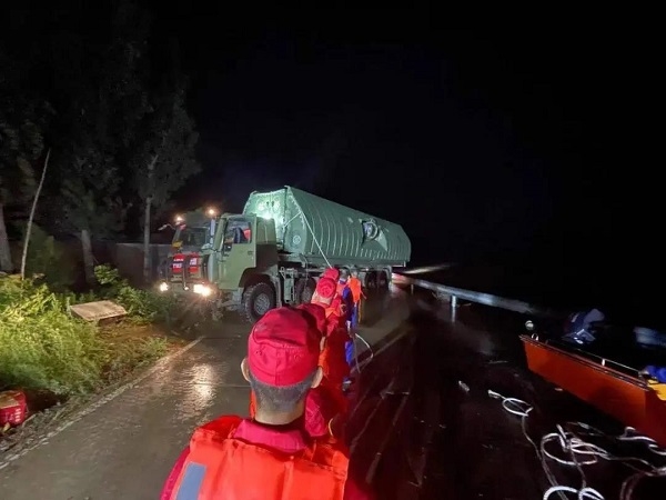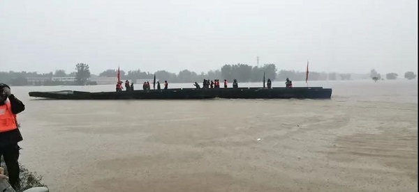 7月22日晚,中国安能两台动力舟桥奔赴河南新乡市卫辉市顿坊店乡牛场村进行支援。