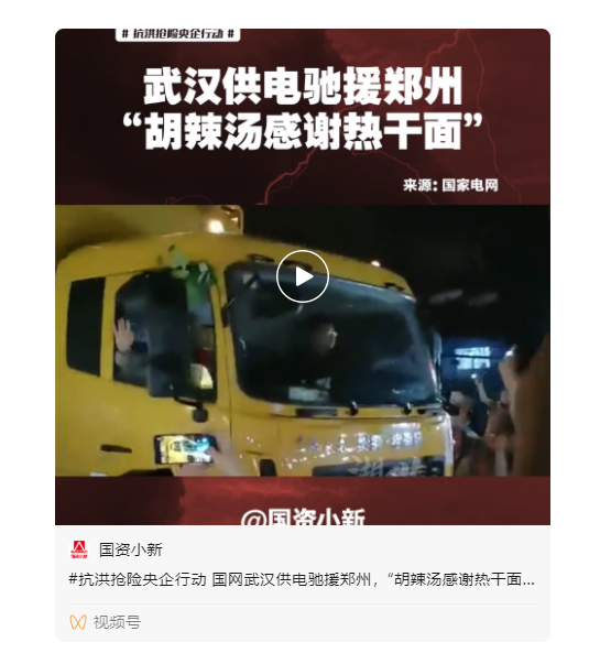 国网武汉供电驰援郑州,郑州市民深夜夹道欢送