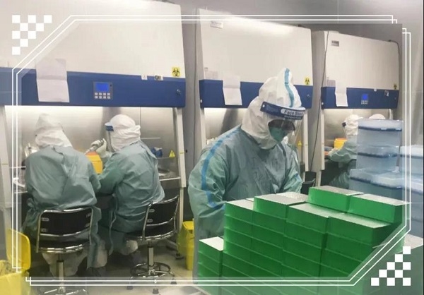 7月20日开始,国药控股南京医学检验有限公司闻令而动,肩负起为南京乃至全省部分检测点持续提供核酸检测设备、试剂和耗材的重任!与此同时,在南京炙夏的天气里,公司检测人员穿上严密的防护服,为一拨又一拨南京市民进行病毒采样,衣服被汗水湿透也没有一句怨言。