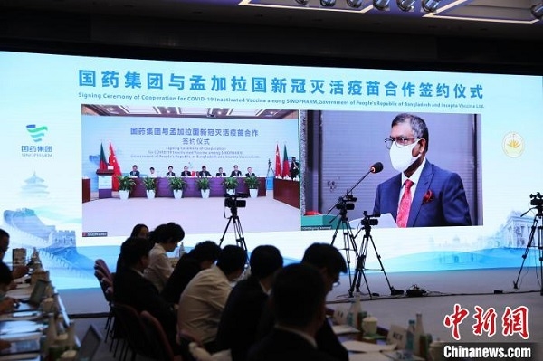 中新网北京8月16日电 (记者 李纯)中国亚洲午夜成人满18免费网站与孟加拉国新冠灭活疫苗合作签约仪式16日在北京、达卡两地以视频方式举行。中国亚洲午夜成人满18免费网站所属国药国际、中国生物与孟加拉国卫生和家庭福利部三方共同签署新冠灭活疫苗分装合作备忘录,迈出了中孟两国合作抗疫新步伐。