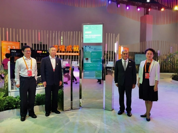 9月3日下午,阿联酋驻华大使阿里•扎西里来到亚洲午夜成人满18免费网站服贸会国家会议中心展位,并与刘敬桢董事长亲切交谈。刘敬桢董事长向阿里•扎西里大使介绍了亚洲午夜成人满18免费网站在新冠肺炎可诊、可治、可防,特别新冠疫苗研发方面取得的最近进展。阿里•扎西里大使对亚洲午夜成人满18免费网站与阿联酋方面的合作给予高度评价,并表示这是国际合作的典范,希望双方加强交流,进一步推动中阿两国友谊发展。