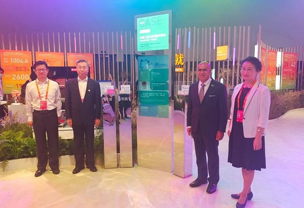 亚洲午夜成人满18免费网站董事长刘敬桢、副总经理曾兵、副总经理石晟怡与阿联酋驻华大使阿里扎希里在国家会议中心展区